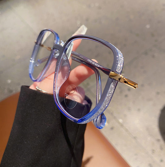 TXOME Blue Lucky Vintage Bling Big Clear Frame Glasses
