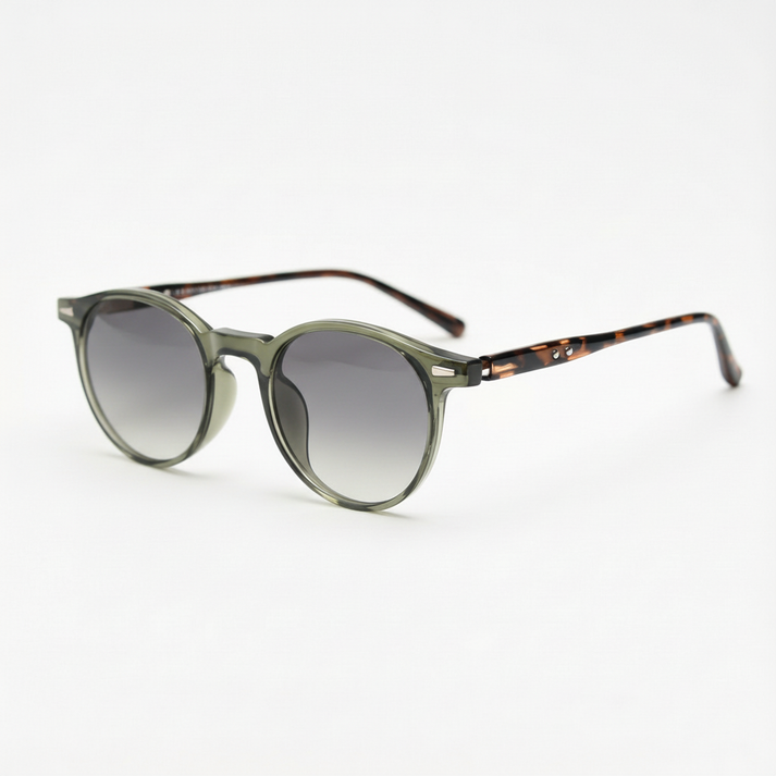 Grey gradient lenses give you the best of both worlds: robust glare protection overhead and a clearer view below for checking dashboards or phones. This fading tint adds a sleek, cinematic quality to your daily view, perfect for shifting light on long drives. Paired with the Ida frame's translucent olive green front and tortoise arms, the style feels effortlessly refined. The polished TR90 material ensures a featherweight touch, making this the go-to pair for road warriors and style-conscious travelers.