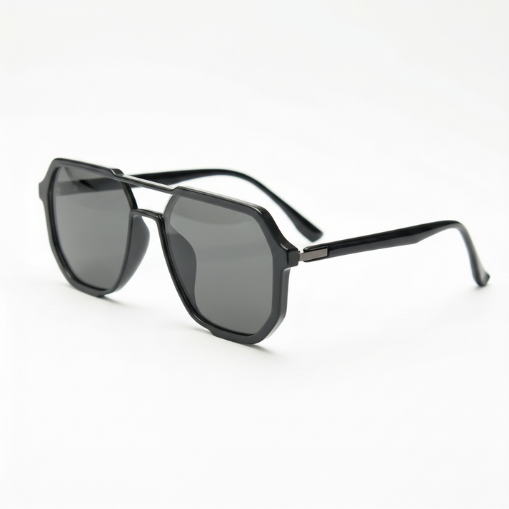 Neutral grey tint keeps the world true-to-life, just more comfortable under open-sky glare. The glossy black geometric TR90 frame adds clean angles and a confident, squared-off silhouette that feels modern on and off camera. Roomier coverage makes it an easy everyday sunglasses pick for sunny commutes and outdoor weekends. Looking for a neutral grey lens that stays versatile with a statement shape? Poppy keeps it sharp, simple, and wearable.