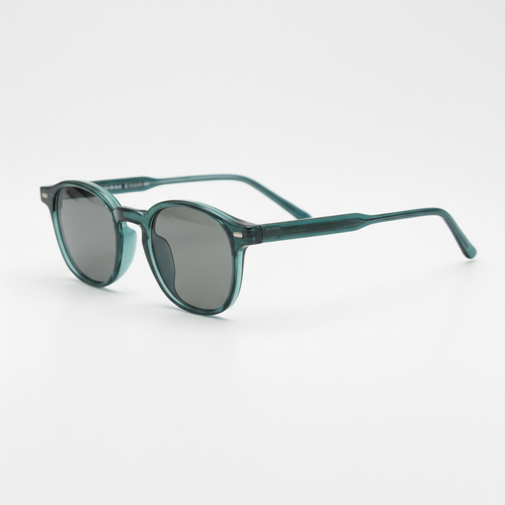 - Green round frame: Transparent rims with deeper temples create a clean, modern-vintage look that photographs well.