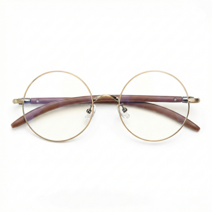 - Gold wire frame: Slim metal rims keep round glasses light, clean, and photo-ready.
