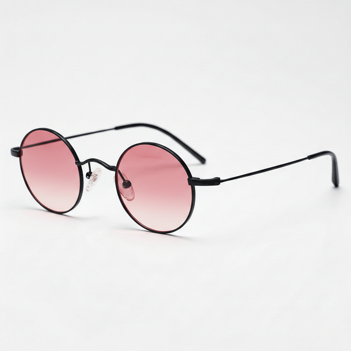 A pink fade lens adds rosy shade up top with a lighter view below - made for relaxed sunny days and golden-hour light. LVY Matte Black keeps it sleek in ultra-small round titanium, balancing the warmth with a matte, low-glare finish. It's soft, flattering color that still reads clean and minimal.