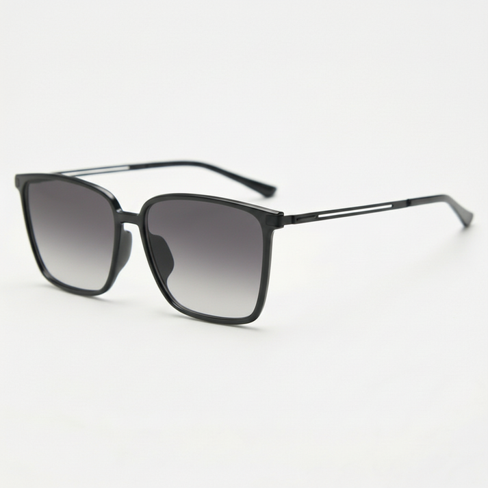 Grey gradient tint gives you shade where you need it most - darker up top, lighter below - so outdoor light feels easier without closing the day down. Sallys glossy black square TR90 frame adds a sharp, polished outline that reads modern on and off camera. The roomier fit is made for city drives, patio lunches, and bright sidewalk walks. Think of it as your grey ombre lens for sunny hours when you want a little softness with your structure.