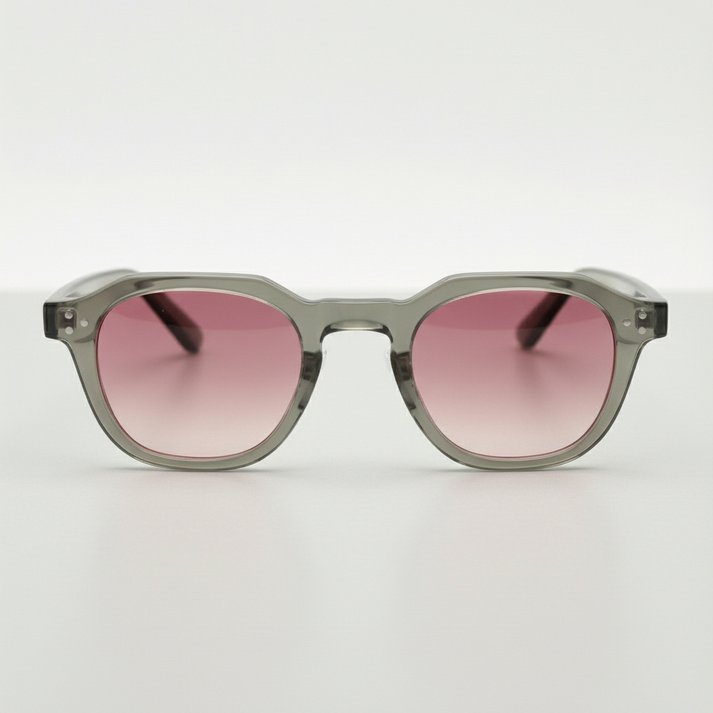 April's transparent green crown-panto frame catches light like sea glass—glossy, airy, and quietly graphic. Pink gradient tint lenses start rosy at the top, then fade lighter below, so bright sun feels softer while your view stays easy when you glance at a menu or phone. It's made for rooftop brunches, downtown strolls, and late tee times when you want photos that glow. Featherweight TR90 keeps it comfortable all day.
