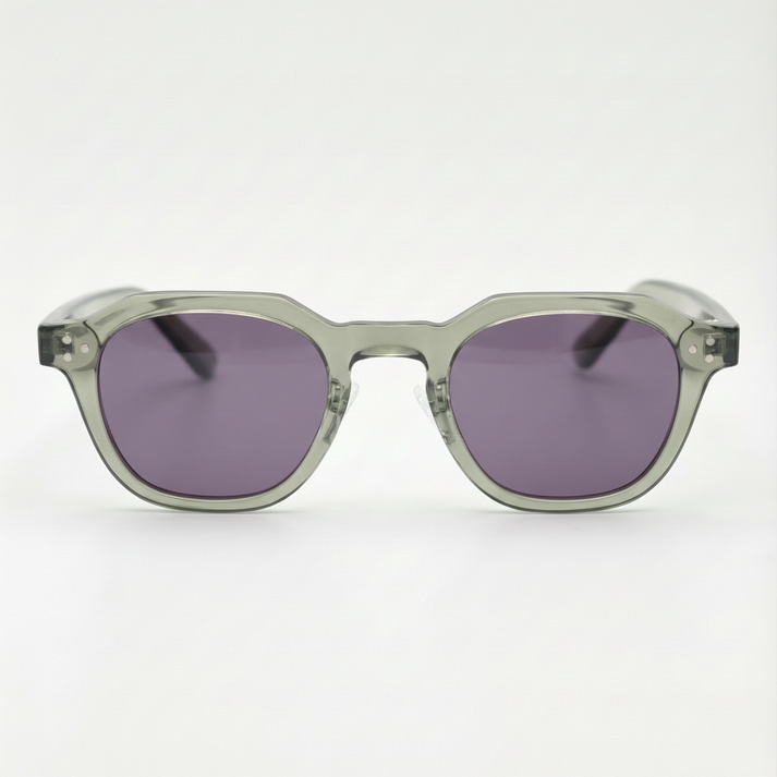April's transparent green crown-panto frame feels like sea glass in motion—glossy, airy, and just graphic enough to stand out. Add purple tint lenses and the vibe turns cooler: mild sun feels softer, and your photos pick up a vivid violet finish. On the course, the light tint keeps the view relaxed for late tee times, then transitions easily to downtown dinners. The full-rim TR90 build stays featherweight and flexible all day.