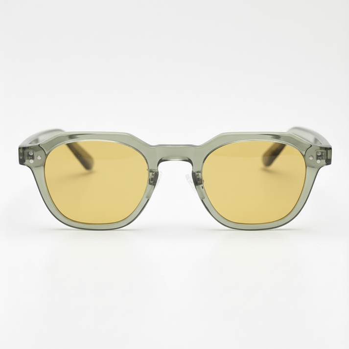 On gray, low-contrast days, the world can look washed out. April in Transparent Green adds a glossy, crystal-olive edge to the crown-panto shape, keeping your look light and modern. Yellow Low-Light Tint lenses bring high-contrast clarity in haze, fog, and overcast afternoons, brightening details in flat lighting without feeling too dark. Perfect for foggy morning commutes and late-afternoon errands. Ideal for commuters, cyclists, and weekend walkers who want yellow low-light tint glasses that look fresh from desk to dusk.