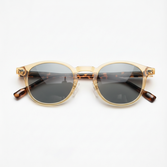 See the day clearly without altering natural colors. These grey tinted lenses reduce harsh brightness for a relaxed visual experience, perfect for midday errands or outdoor sketches. They are paired with a lively yellow round TR90 frame that brings a burst of creative energy to your look. The thermoplastic build feels air-light on your face, making this combination ideal for anyone who wants dependable sun protection wrapped in a fun, artistic package.