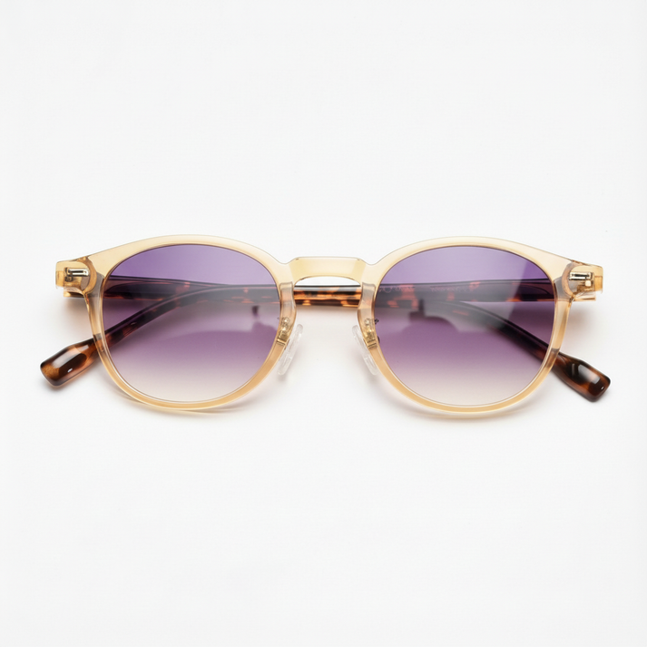 Step into a softer world with purple gradient lenses that filter glare while bathing your view in a whimsical glow. This dreamy tint finds its perfect partner in a bright yellow round frame, creating an artistic, complementary color palette that turns heads. The TR90 material ensures the frame feels as light as the look suggests, offering durable comfort for anyone looking to add a touch of fantasy to their daily wardrobe.