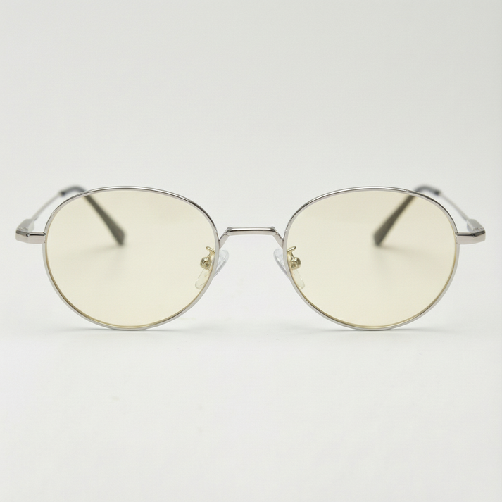 Back-to-back tabs and bright office LEDs feel calmer with blue light filtering lenses that add a subtle warm tone while keeping the look nearly clear. Made for long screen-work sessions, video calls, and late-night reading, they take the edge off harsh indoor glare without turning your world tinted. Finished in Silver, the June frame keeps it sleek: a slim round stainless-steel silhouette with smooth rims and adjustable nose pads for a steady, comfortable fit.
