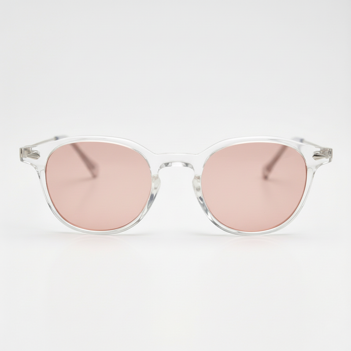 Crystal-clear Lora looks like glass but feels air-light in flexible TR90, so the frame practically vanishes. The Pink Tint lens adds a soft rose wash that warms mild sun and gives photos a flattering glow—perfect for golden-hour strolls and patio brunch light. The tint keeps the vibe modern and wearable, not loud, whether you’re reading a cafe menu or lining up a quick street-style shot. For clear frame sunglasses with pink tint lenses, this is the effortless weekend edit.