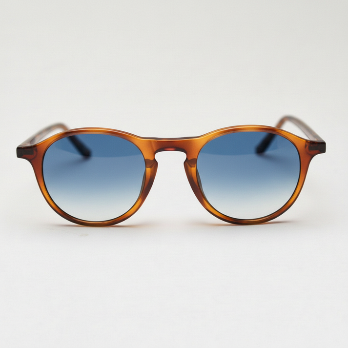 Blue gradient lenses cool down harsh brightness with a bold top tint, then fade lighter below so your view stays clear for downward glances and close-up moments. Moira’s amber tortoise round TR90 frame adds a polished, warm contrast—air-light on the face, flexible in hand, and steady through long days outside. It’s the pair for beach boardwalks, marina afternoons, and rooftop sunsets when you want a modern pop of color that still feels easy to wear.