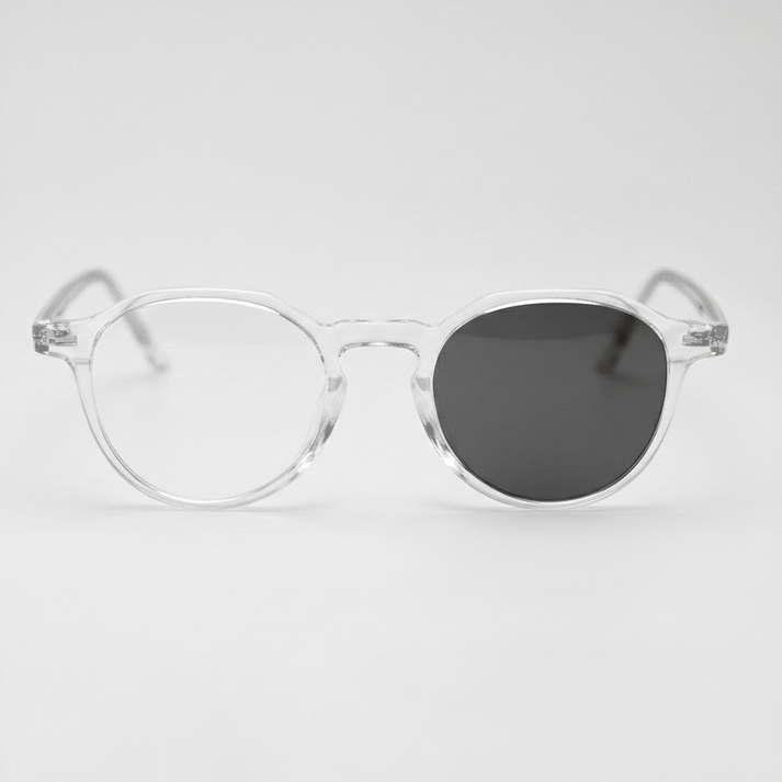 It's the one-pair answer for changing light - clear indoors, darker outside, and still bright on the face thanks to the clear frame. Great for doorway-to-daylight routines.