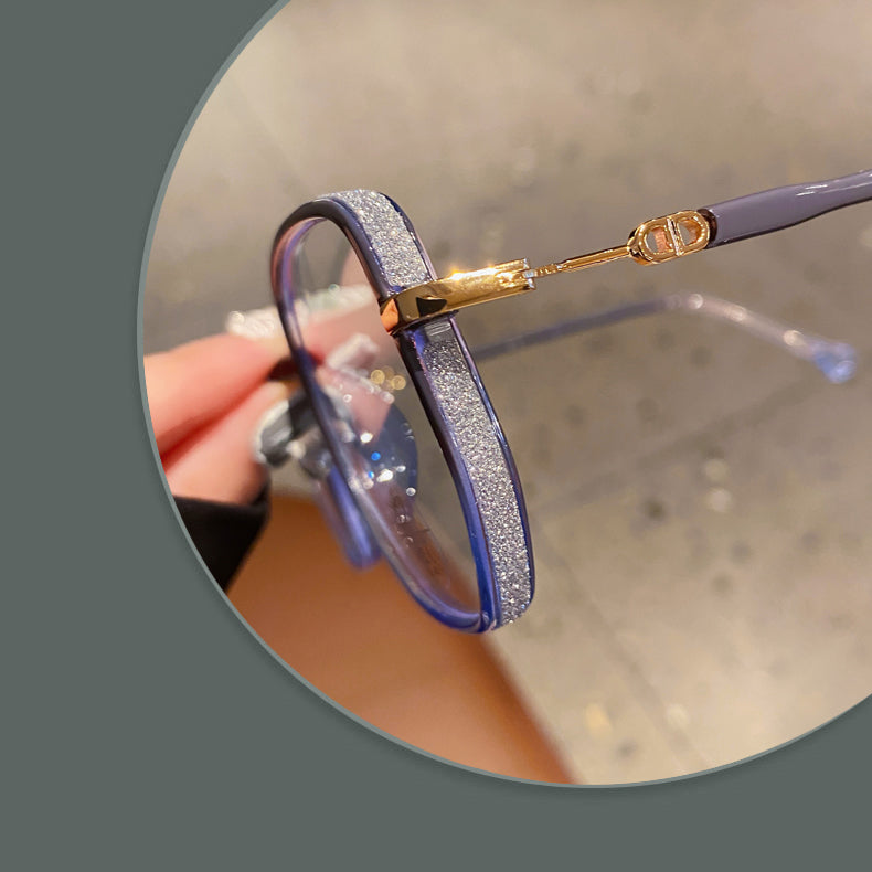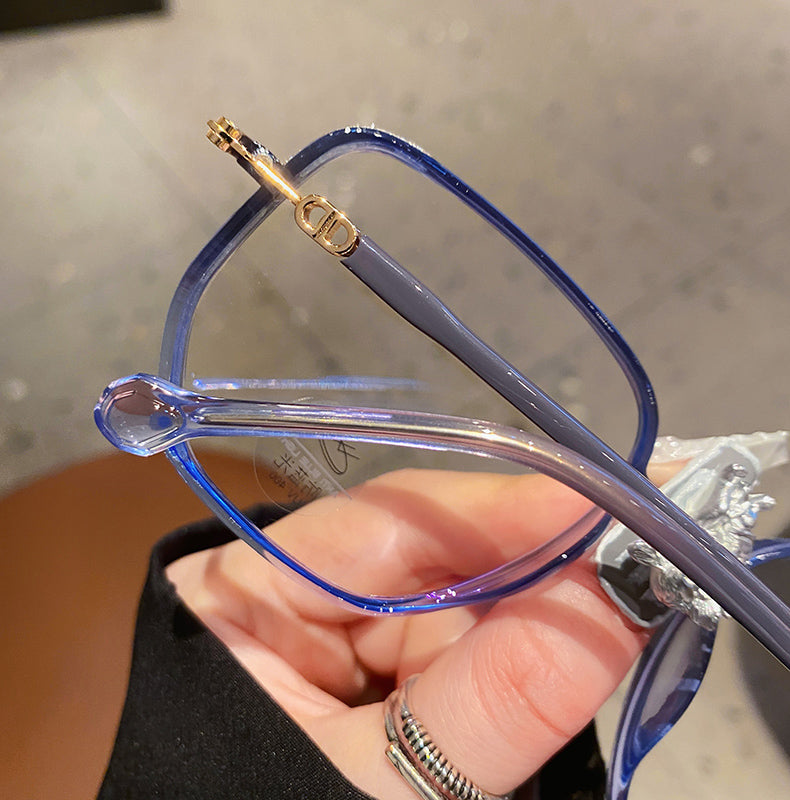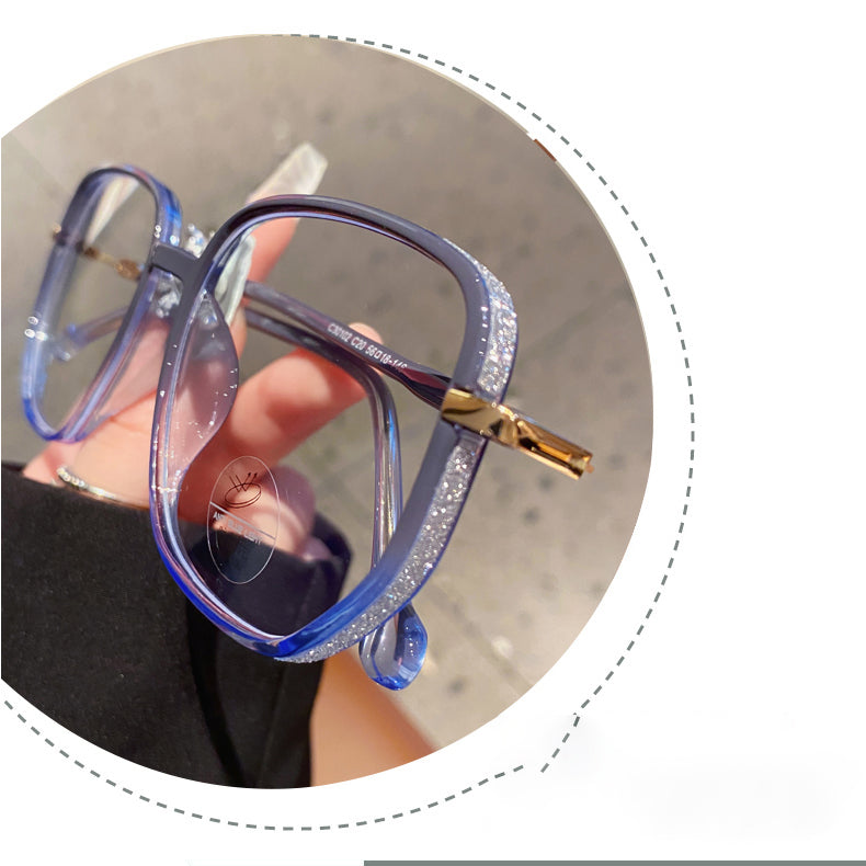 TXOME Blue Lucky Vintage Bling Big Clear Frame Glasses