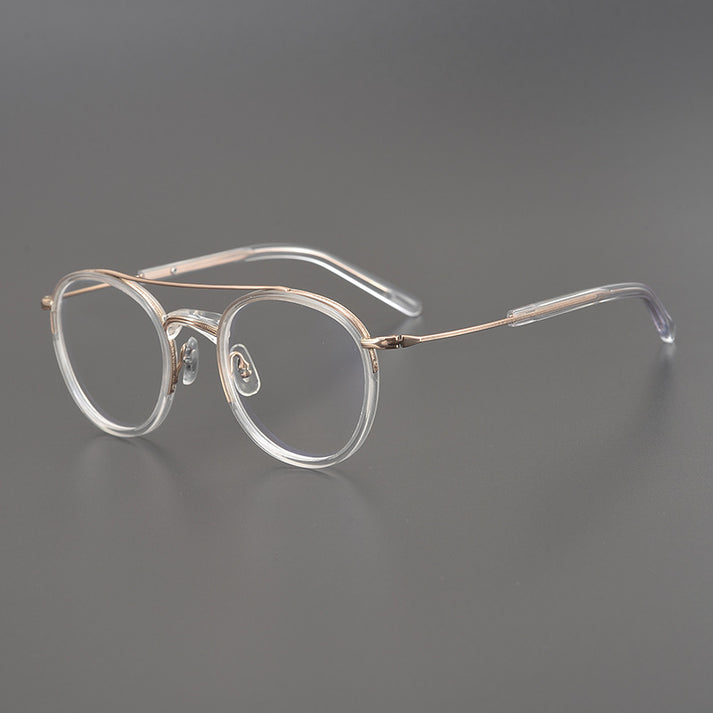 Halcyon, a testament to timeless style and durability. Crafted from lightweight and durable pure titanium, this frame offers unparalleled comfort for all-day wear. The round shape and transparent frame make Halcyon suitable for a variety of face shapes, particularly those with angular features. Perfect for individuals seeking a blend of classic elegance and modern minimalism, Halcyon is the epitome of understated sophistication.