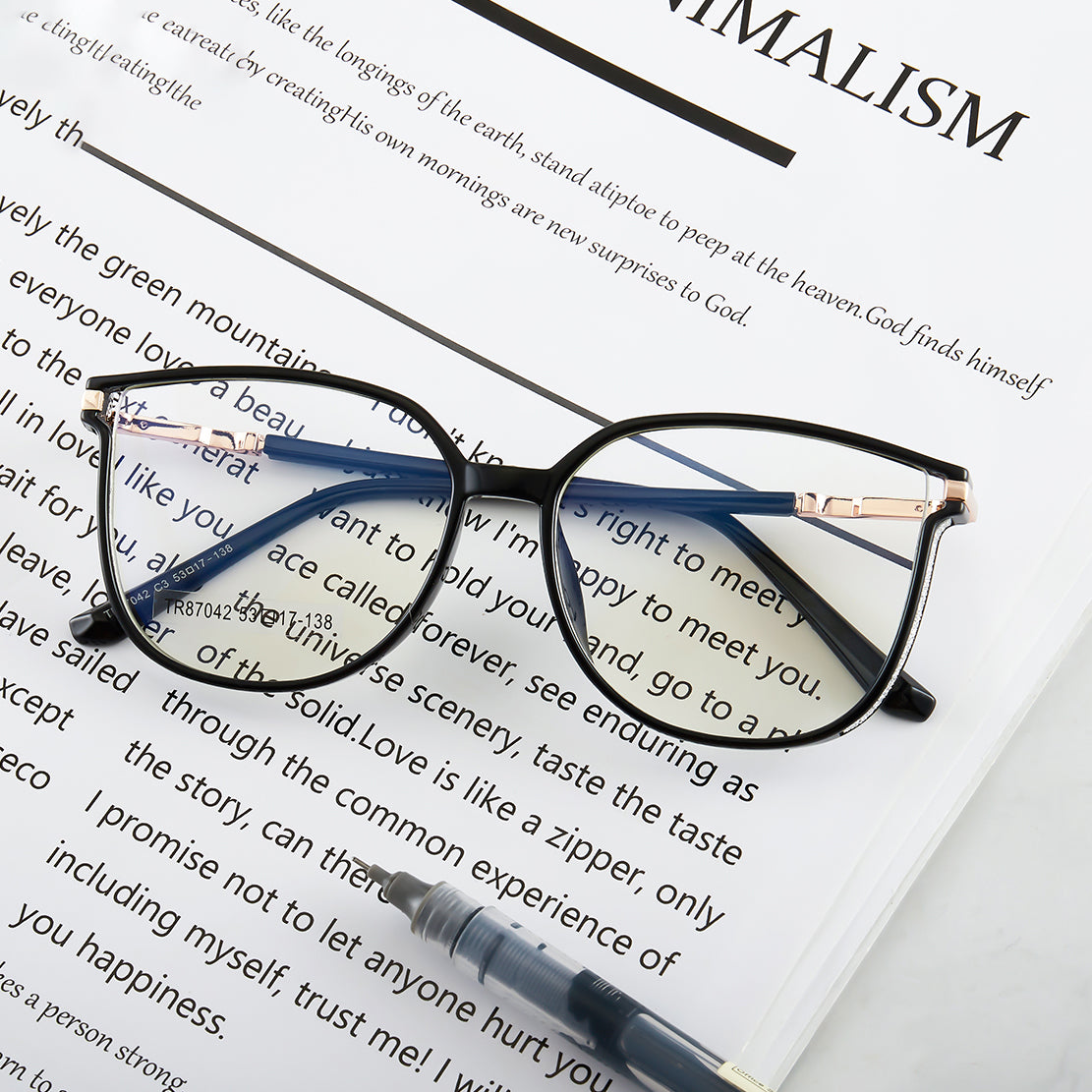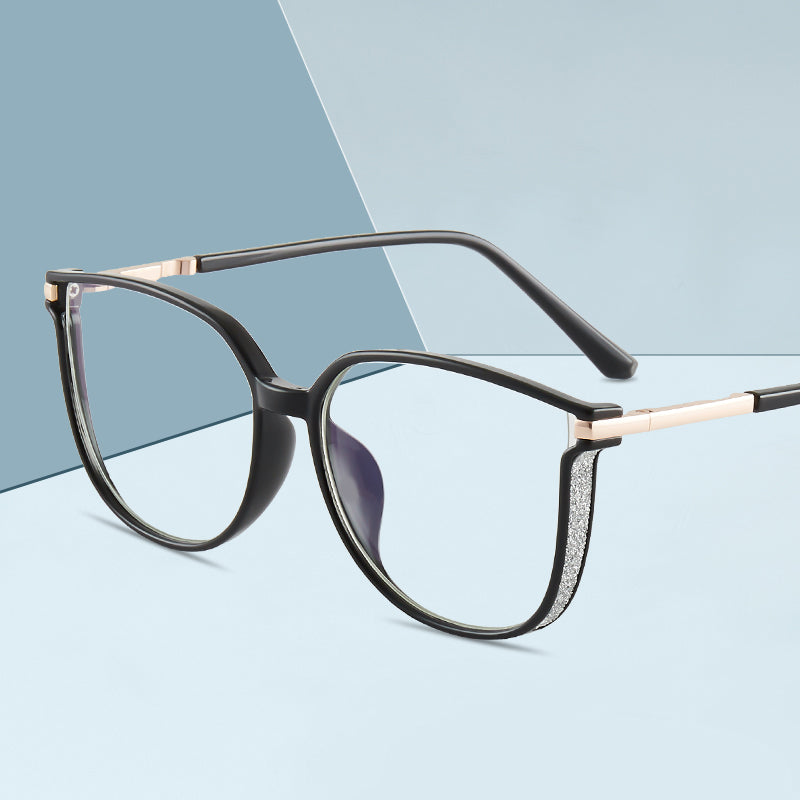 TXOME Myrna Bling Big Black Frame Glasses