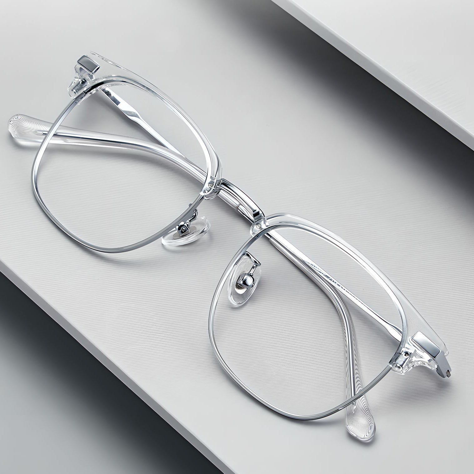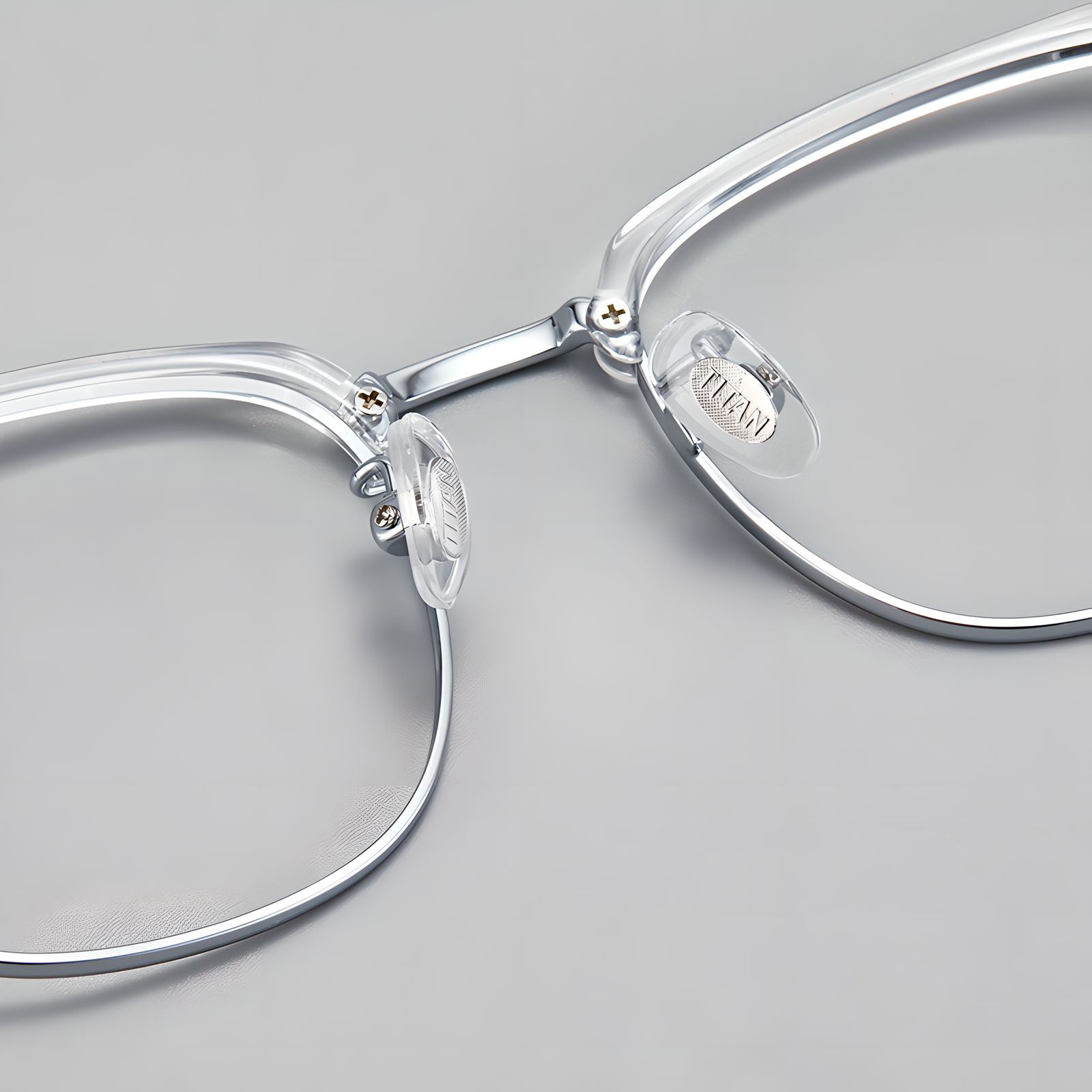 Penny, a sleek and sophisticated addition to your eyewear collection. With its subtle browline frame and fresh transparent design, Penny exudes timeless elegance. Perfect for those who appreciate understated style, these glasses effortlessly elevate any look with their clean lines and contemporary charm.